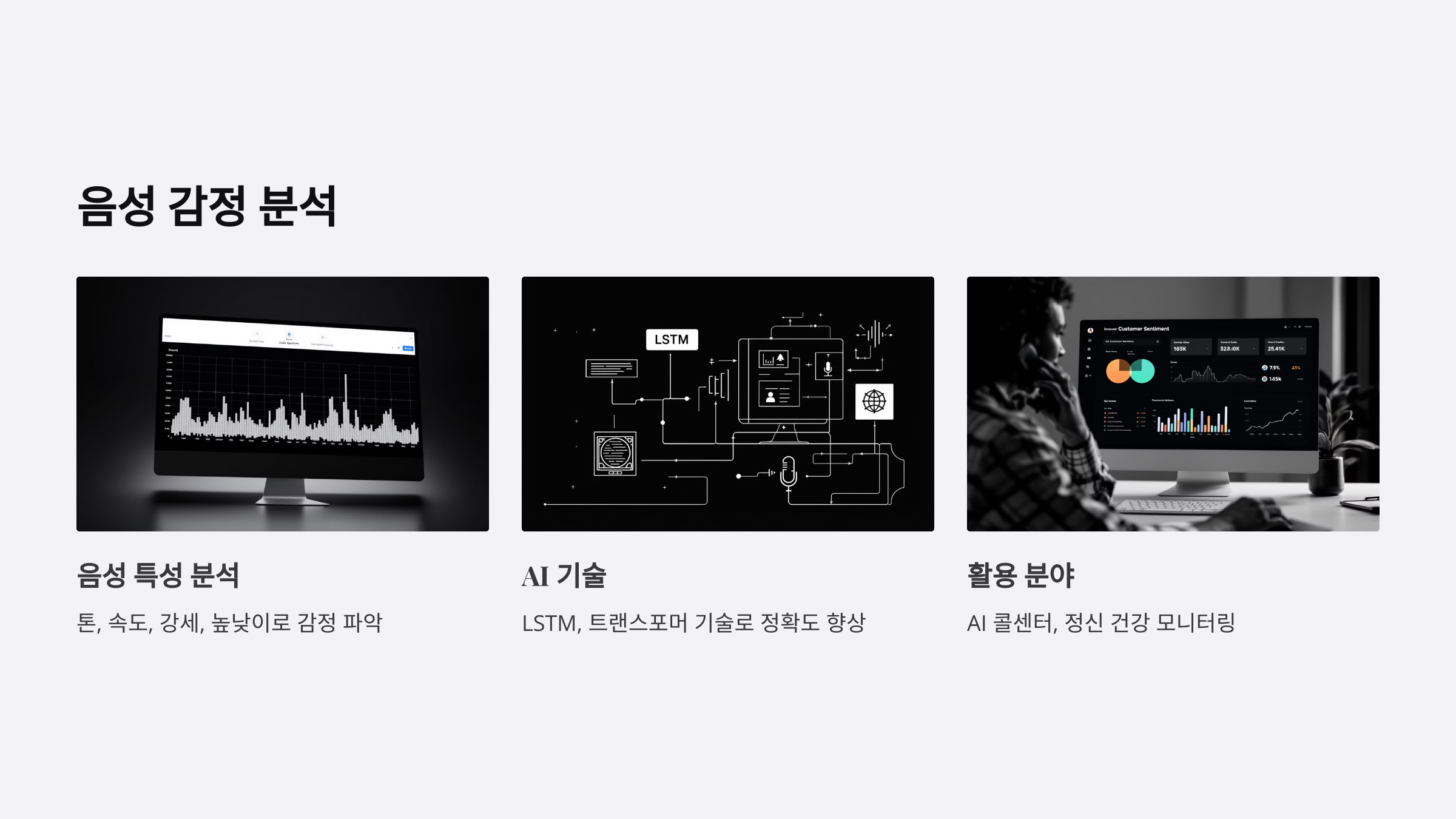 -AI는 음성에서 톤, 속도, 강세, 높낮이 등을 분석해 감정을 파악합니다.