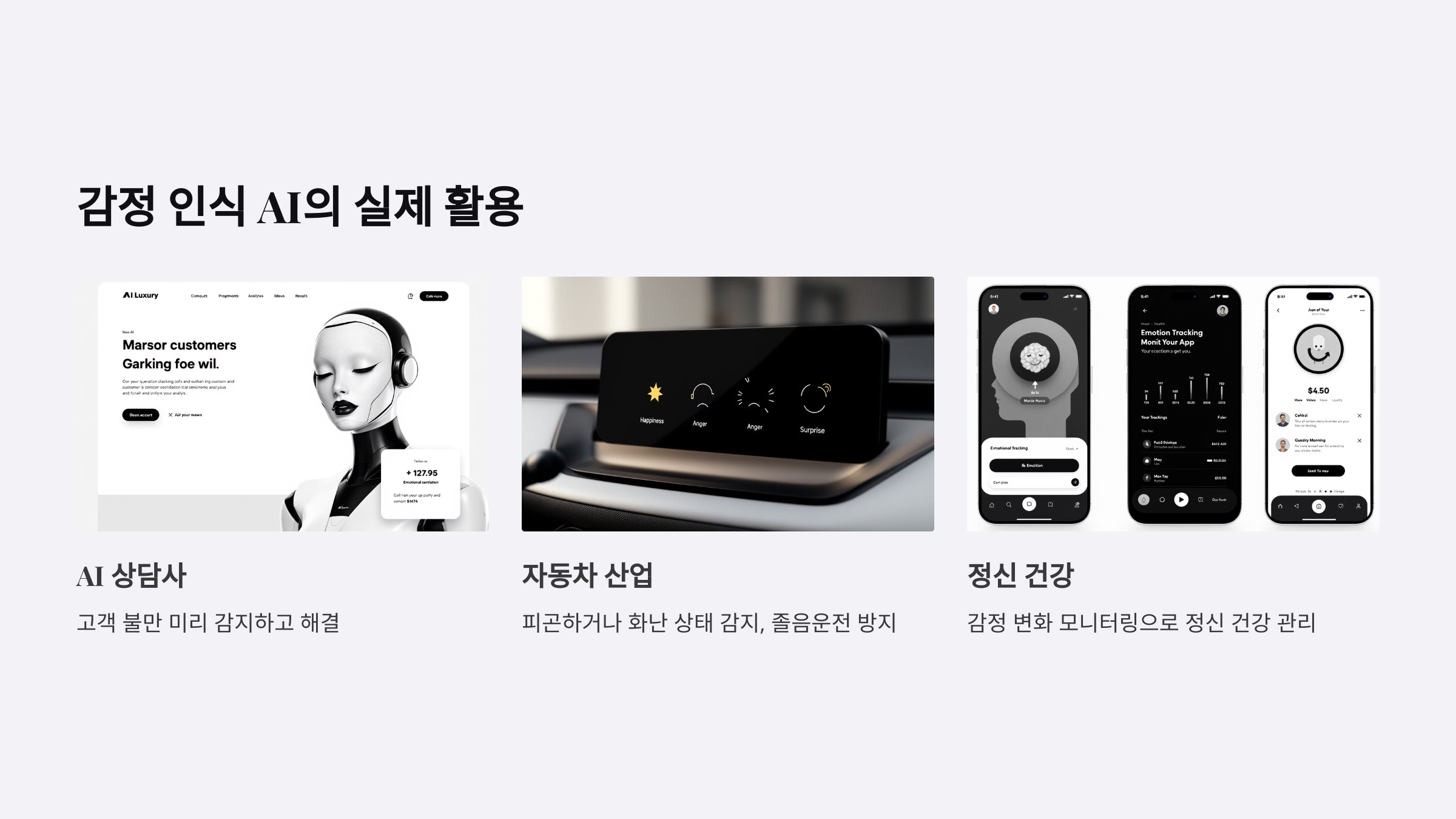 이미 AI 감정 분석 기술은 여러 산업에서 실용화되고 있습니다.