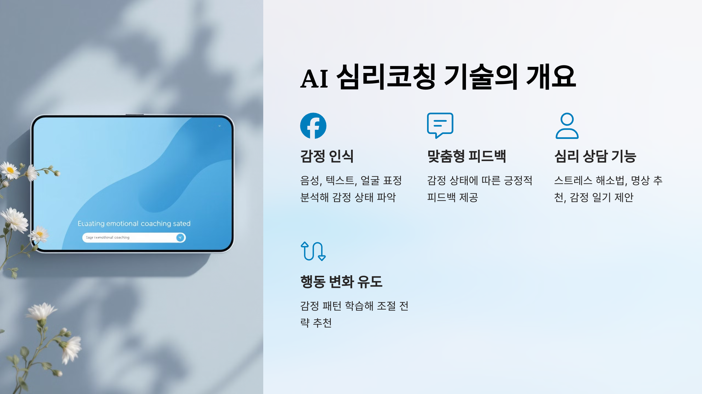 인공지능(AI)이 단순한 정보 제공을 넘어 우리의 감정을 조절하는 역할까지 할 수 있을까요? 요즘 AI 기술은 빠르게 발전하며 심리코칭, 감정 분석, 스트레스 관리 등 다양한 역할을 수행하고 있어요. 특히 AI 심리코칭 기술은 바쁜 현대인들에게 큰 도움이 될 가능성을 보여주고 있습니다.