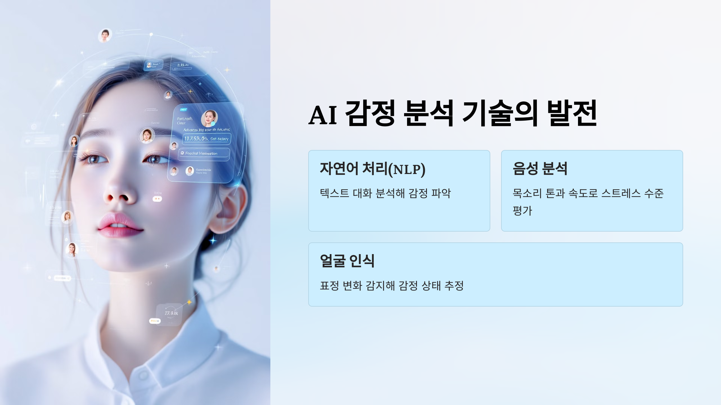 🔹 자연어 처리(NLP): 사용자의 텍스트 대화를 분석해 감정 파악