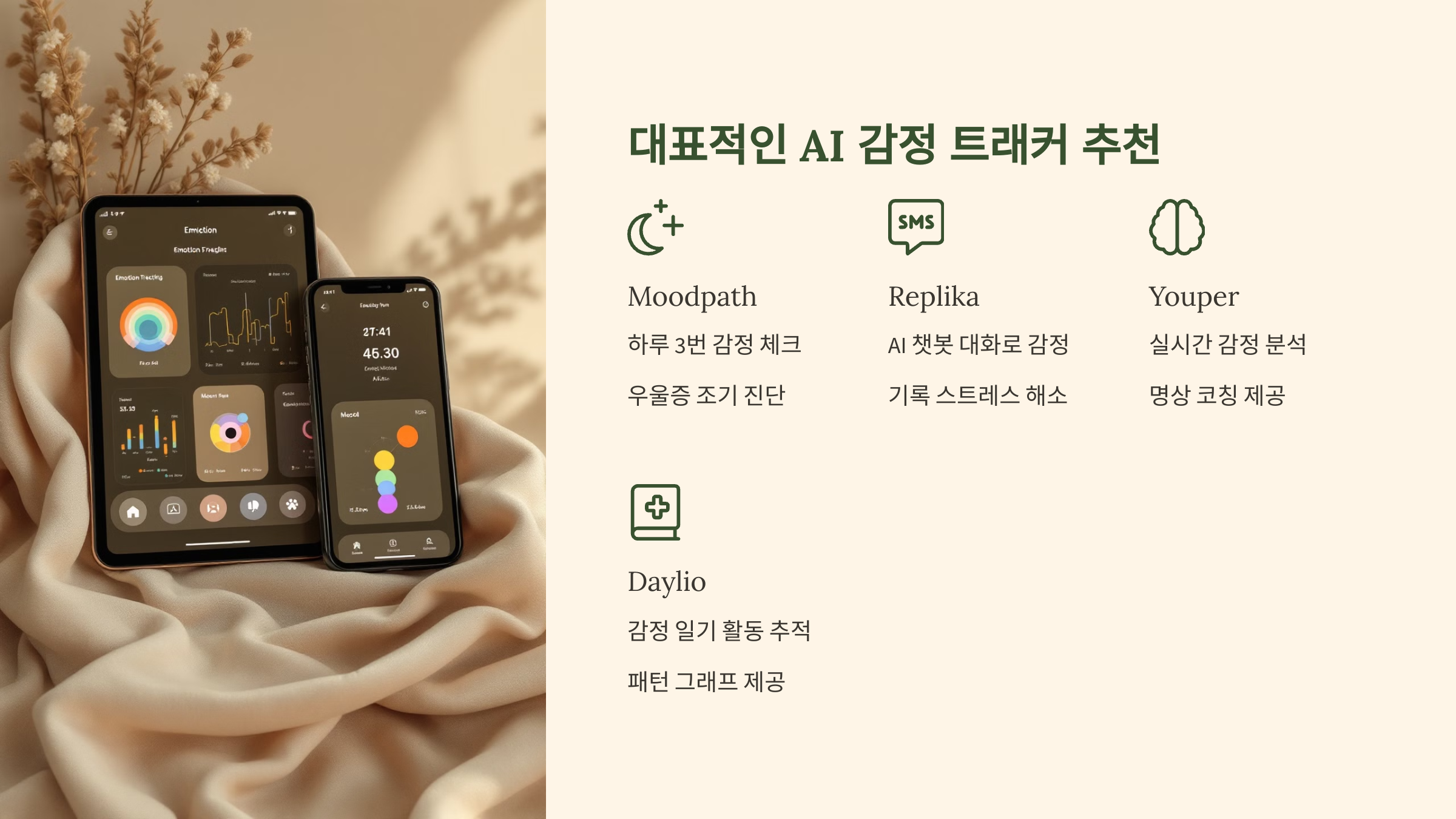 이처럼 AI 감정 트래커는 단순한 감정 기록을 넘어 감정의 흐름을 객관적으로 파악하고 보다 건강한 정서적 균형을 유지하는 데 유용한 역할을 할 수 있습니다.