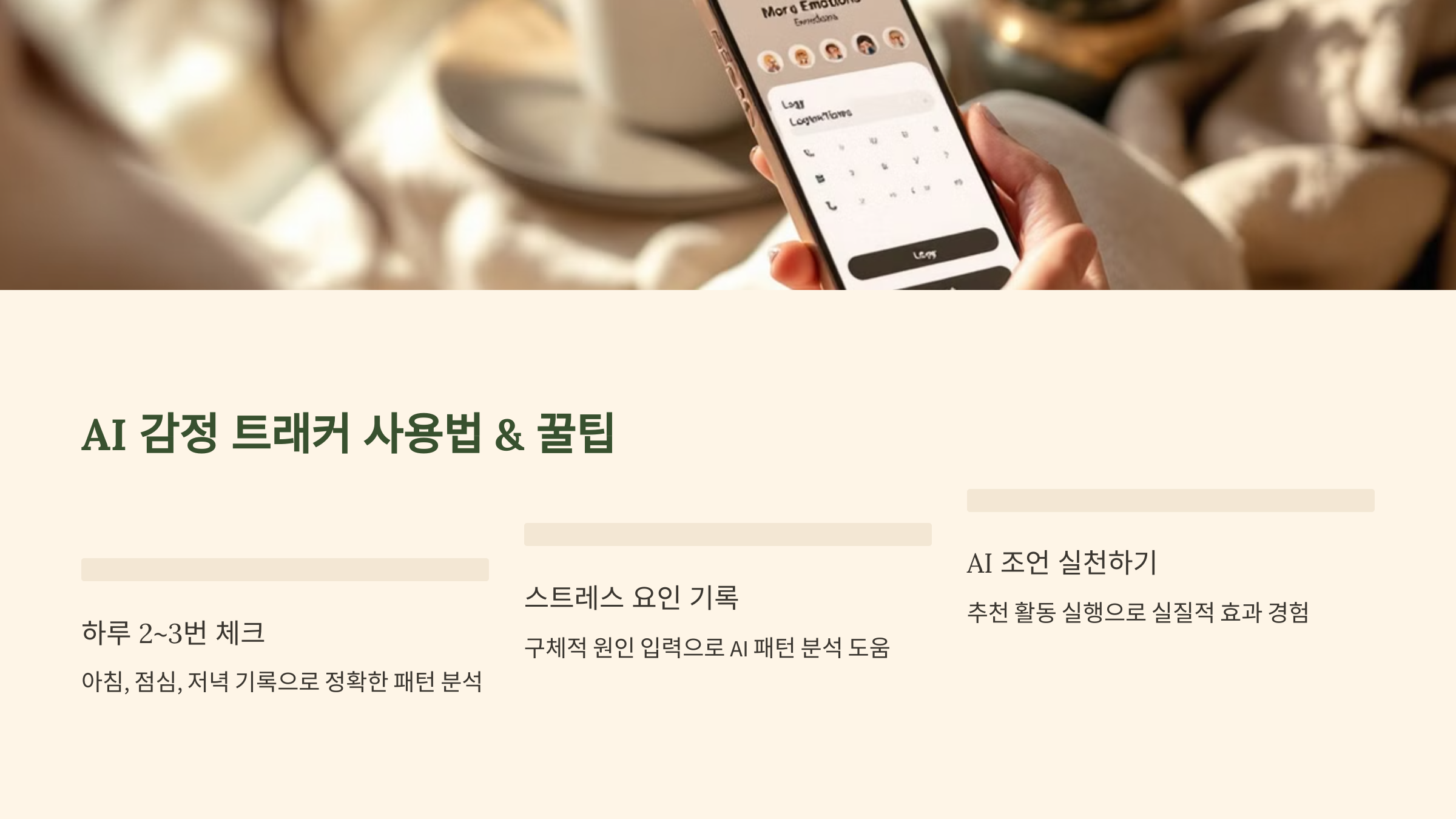 ✅ 직장인 A씨 - "업무로 인한 스트레스가 지속적으로 쌓여 피로감을 느끼곤 했습니다. 하지만 AI 감정 트래커를 활용하여 매일 감정을 기록하면서 스트레스의 원인을 보다 명확히 파악할 수 있었습니다. 특히, 퇴근 후 명상 습관을 들이면서 감정이 한결 안정되었고, 일상에서도 긍정적인 변화를 경험하고 있습니다."