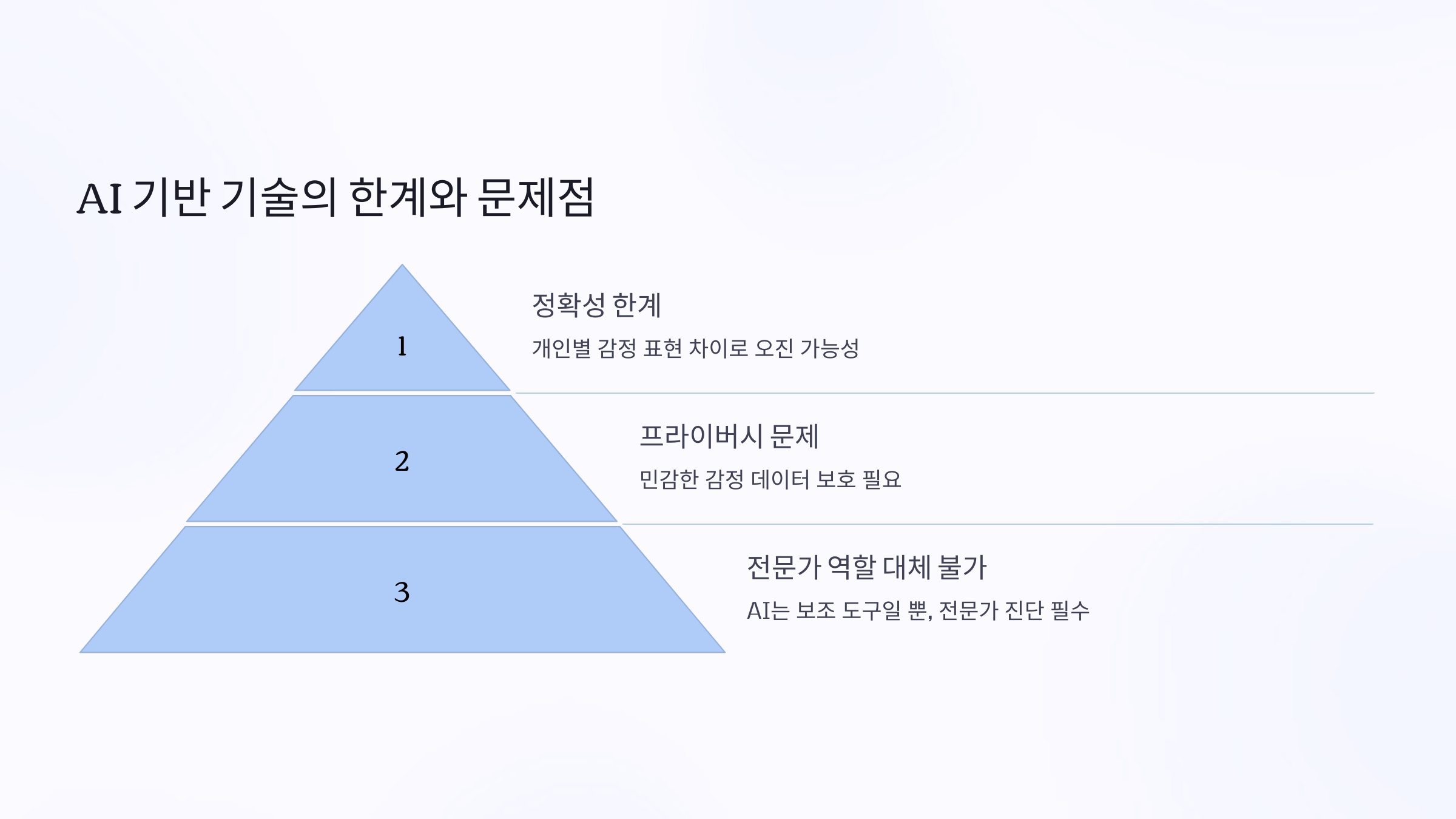 하지만 AI 기반 우울증 감지 기술이 완벽한 것은 아닙니다. 몇 가지 주요 문제점이 존재합니다.