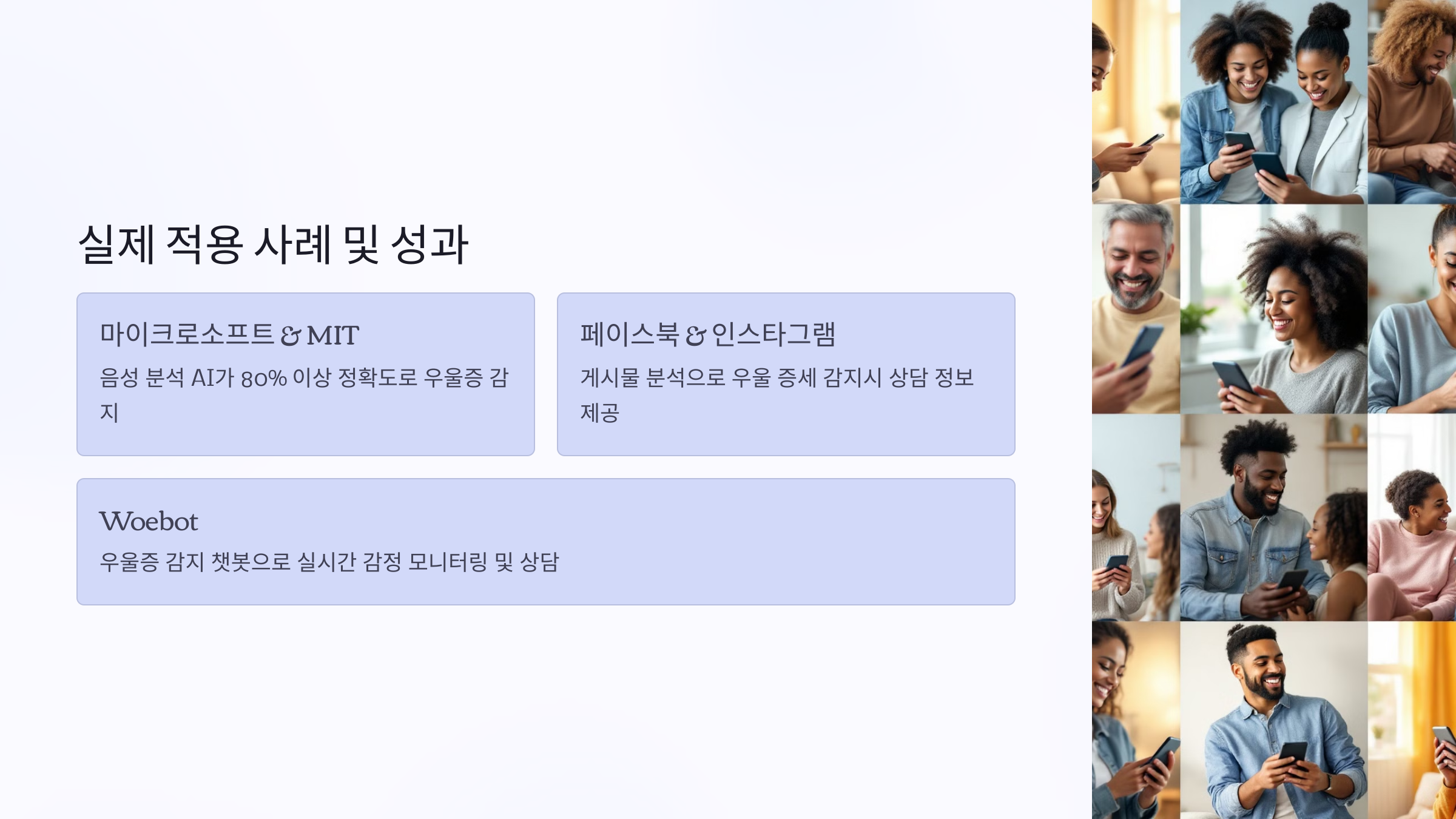 이미 여러 연구에서 AI 기반 우울증 감지 기술의 효과가 검증되고 있습니다.