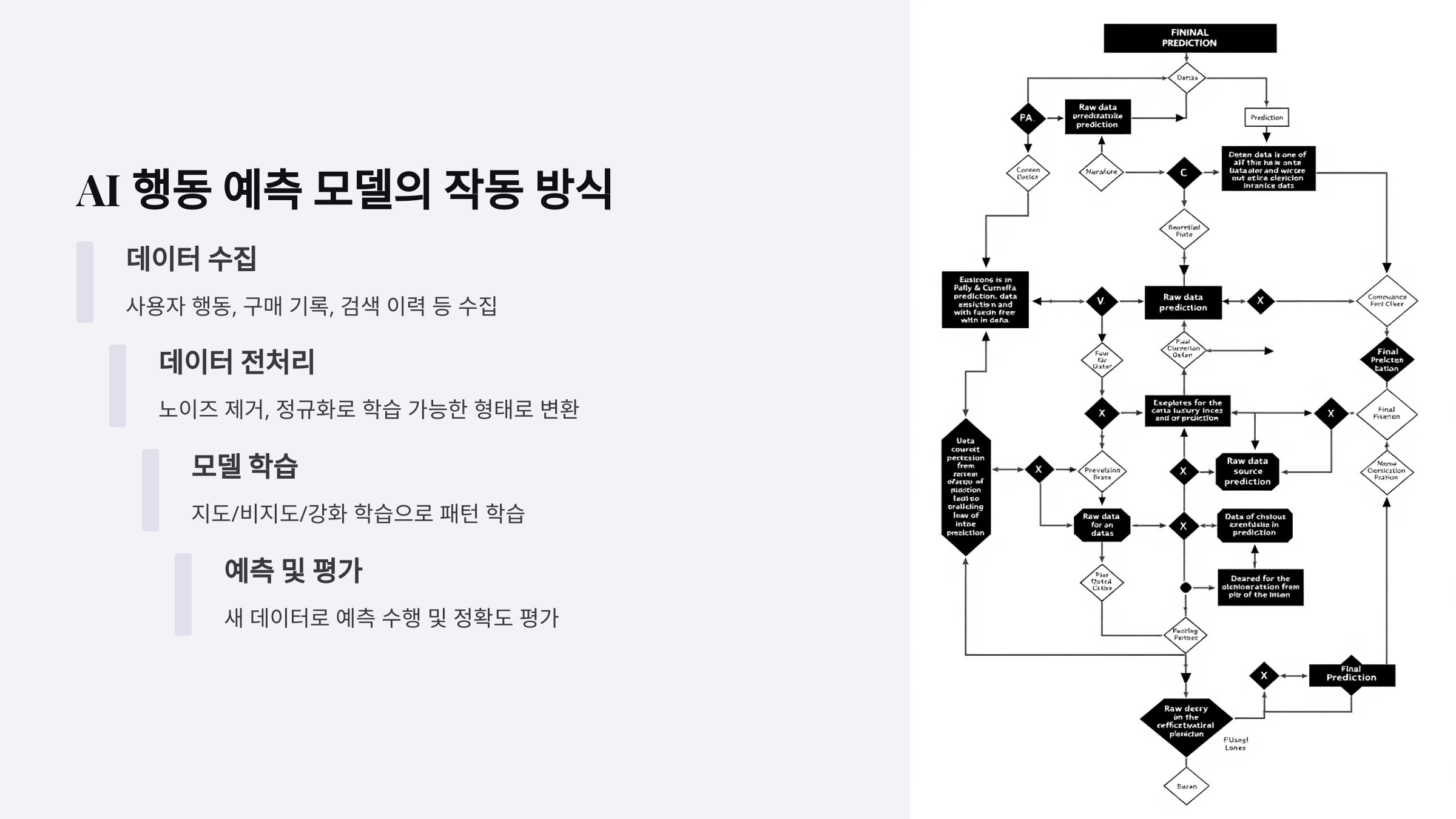잘못된 데이터가 입력되면 AI의 예측 결과도 부정확해질 가능성이 크기 때문에 데이터 수집 및 정제 과정이 핵심 요소로 작용합니다.